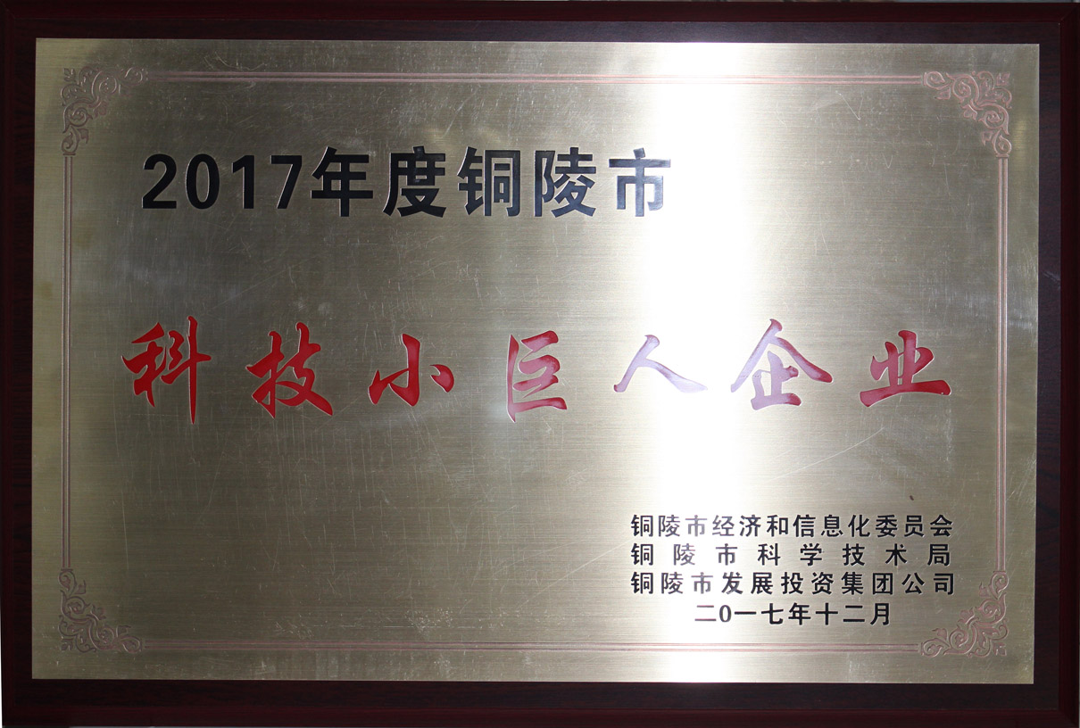 安徽安科恒益藥業有限公司等十家企業,被評為2017年銅陵市科技“小巨人”企業。