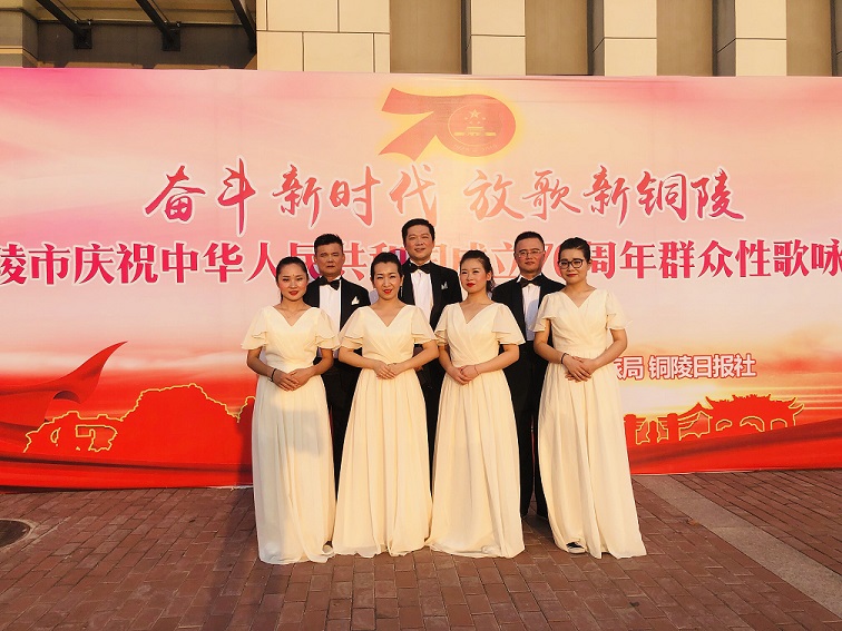 為慶祝中華人民共和國成立70周年,由銅陵市委宣傳部主辦,全市黨政機關、企事業單位、社會團體24支代表隊近2000人參與的“奮進新時代,放歌新銅陵”群眾性歌詠比賽于近日落下帷幕。我公司七名員工作為銅陵經開發區代表隊成員參與了此次活動。活動從組隊、排練、參演、預賽、決賽歷時二個多月,各參賽隊精心準備,均邀請了歌詠比賽專家利用業余時間對歌曲曲目的高低聲部、齊唱、合唱進行訓練練習,此次活動各行各業干部群眾廣泛參與,演唱水平層次高,準備充分,在全市掀起了濃厚的合唱藝術氛圍,充分表達了全市人民愛國愛家鄉的深厚情感。