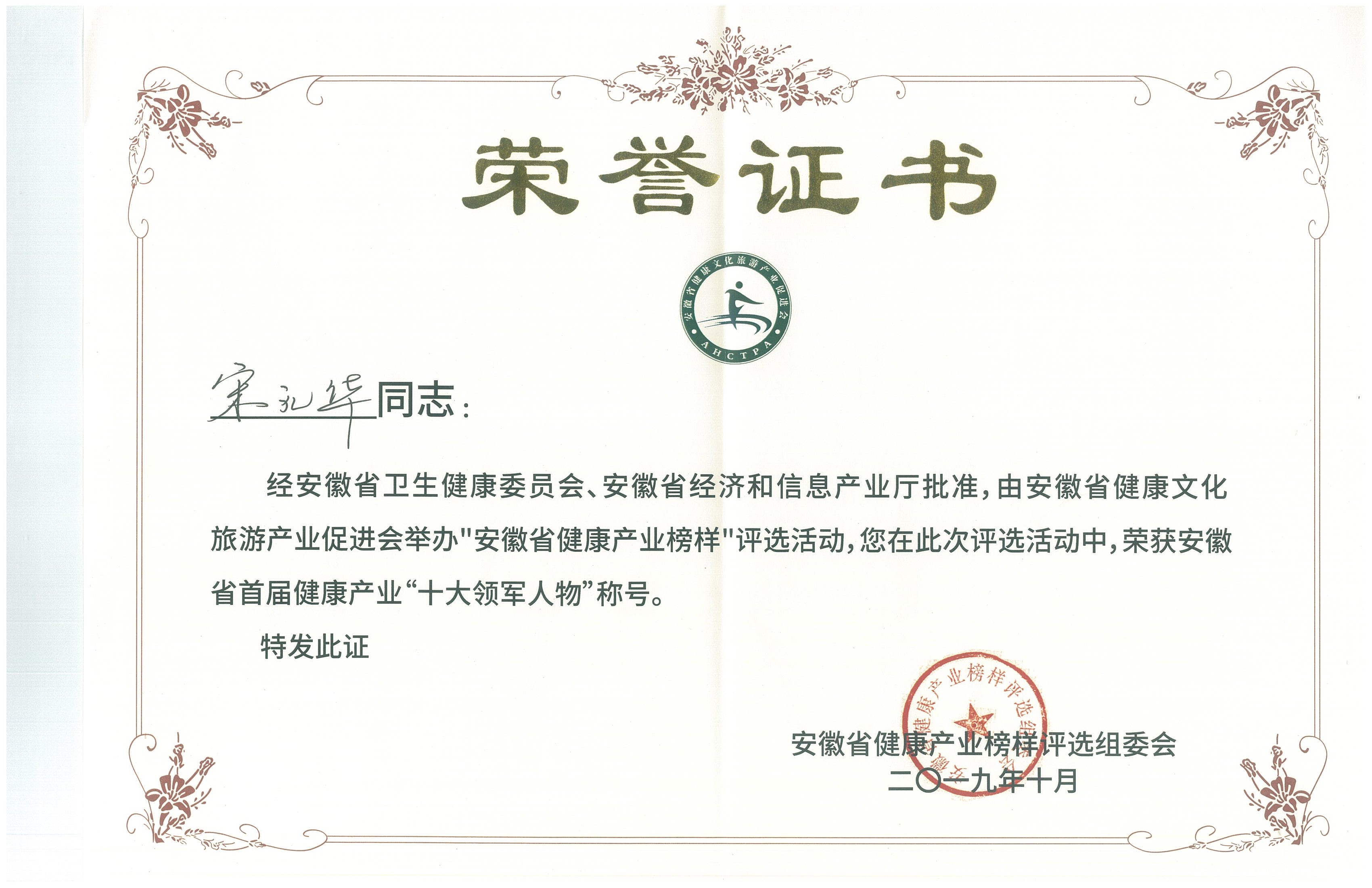 2019年10月15日,“平安養老杯”安徽省首屆健康產業榜樣頒獎盛典上,安科生物宋禮華董事長榮獲“安徽省健康產業榜樣評選十大領軍人物”稱號。