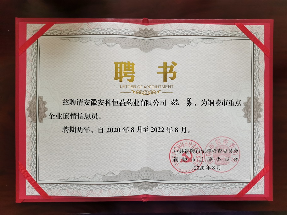 9月1日下午,市委常委、市紀委書記、市監委主任盛九江率隊深入銅陵經開區開展”走進企業護航發展“集中走訪活動。盛九江一行第一站來到我公司,在公司會議室內,盛書記聽取了企業對營商環境、干部作風方面的意見和建議,向經開區重點企業“廉情”信息員頒發了聘任證書。