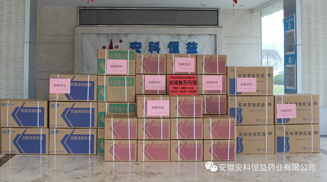 疫情就是命令 ,防控就是責任,作為銅陵的本地藥企,安科恒益不忘使命,擔負起制藥企業應盡的責任,3月19號下午,公司用最快的速度通過銅陵市紅十字會,向銅陵疫情防控一線醫療機構捐贈抗生素類、解熱鎮痛類和抗感冒類總價值23萬元藥品,支援新型冠狀病毒防控工作。